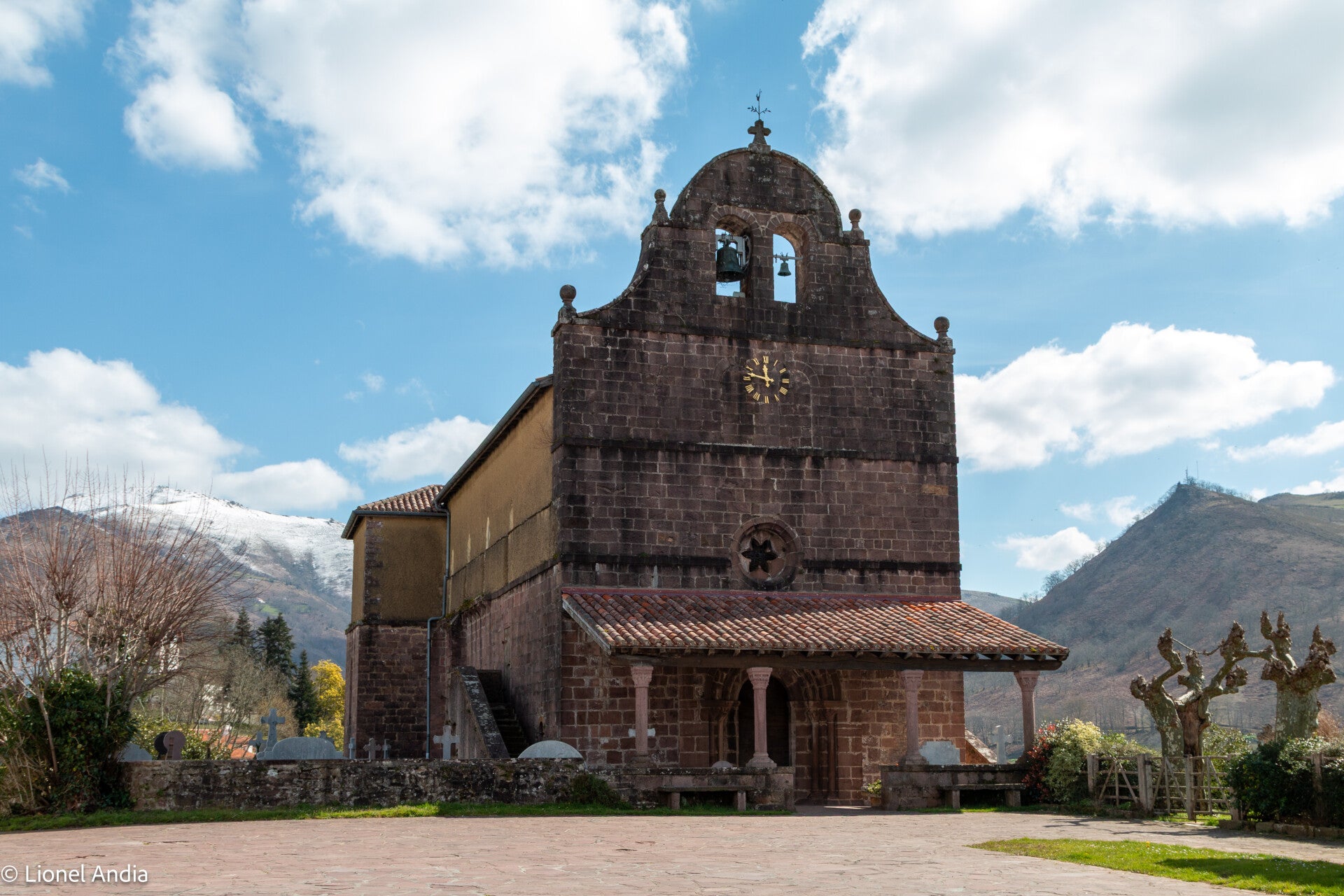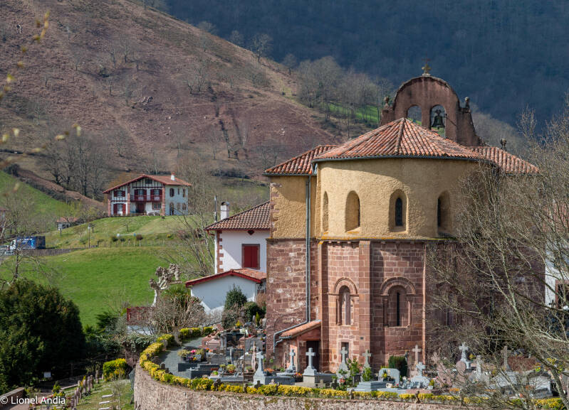 L’église Notre-Dame de Bidarray se distingue par son majestueux clocher-mur construit au XVIIe siècle ainsi que par ses façades basses réalisées en grès rouge.